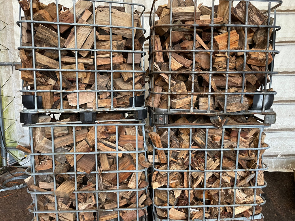 This wood is stored in cages off the ground and will be significantly drier than the scooped wood.